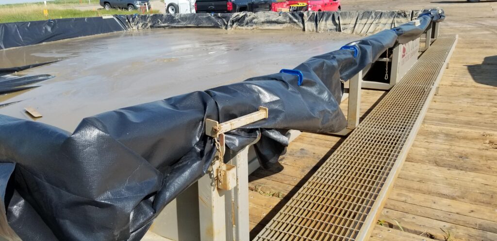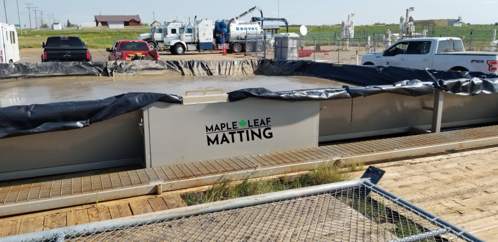 Maple Leaf Matting’s Slurry Cell containment system offers our clients the unique opportunity to hold onsite slurry tailings from hydrovacs. Instead of housing multiple hydrovacs on location, our Slurry Cell system allows you to reduce costs by eliminating the requirement for mulitple hydrovacs onsite, and travel to dispose of slurry tailings.